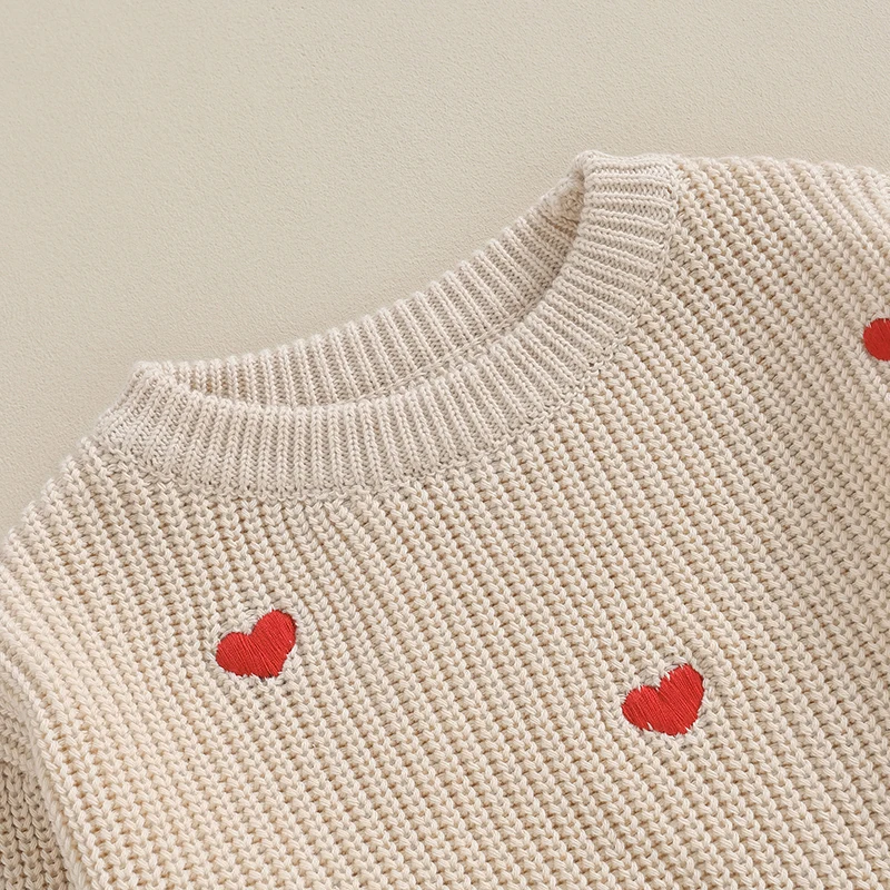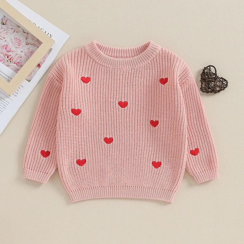 Baby Girl Sweaters Cute Long Sleeve Heart Embroidery Knit Pullovers Infant Jumper Tops